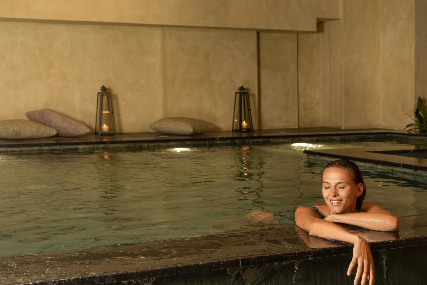 Immerse yourself in the soothing warmth of our indoor heated pool with hydromassage, where gentle bubbles melt away tension. Cleanse and refresh in the sauna or experience the purifying ritual of the authentic hammam, letting the steam envelop you in deep relaxation.